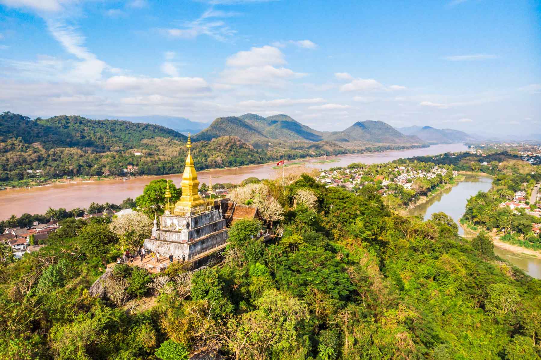 Visit Mount Phousi, one of Luang Prabang’s most iconic landmarks. This sacred hill offers spectacular 360-degree panoramic views over the city, the Mekong River, surrounding temples, and distant mountains. A peaceful and scenic stop ideal for photography.