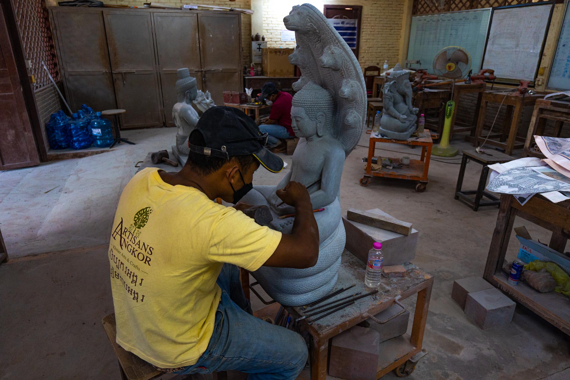 Visit Les Artisans d’Angkor – Chantiers Ecoles, a social enterprise dedicated to preserving traditional Cambodian crafts. Watch skilled artisans create ornamental sculptures, lacquerware, silk weaving, and silk painting.